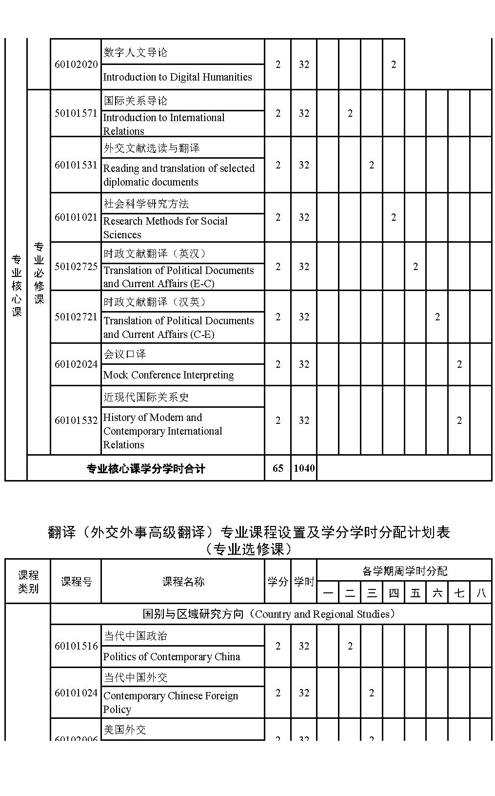 太阳成tyc7111cc翻译(外交外事高级翻译)专业本科培养方案(2024)
