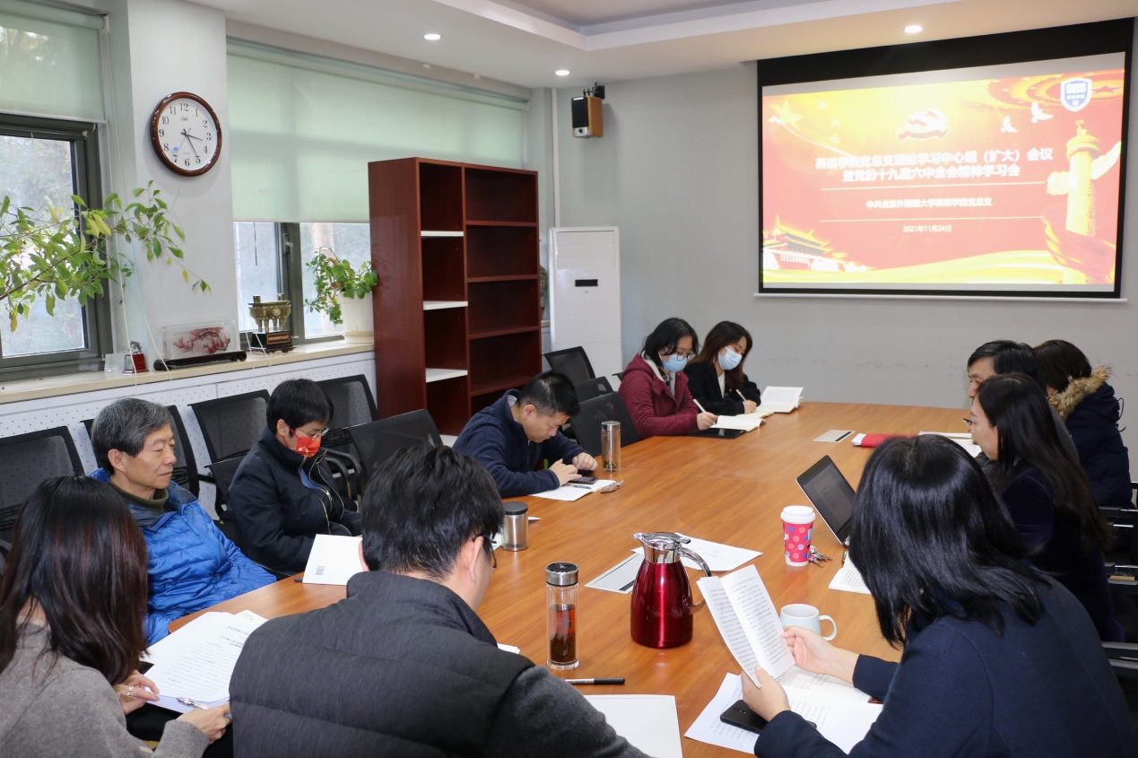 11月24日下午,太阳成tyc7111cc党总支召开理论学习中心组(扩大)会议专题学习党的十九届六中全会精神,学院党总支委员、领导班子全体成员、教工党支部书记、全体辅导员参会。会议由党总支书记王明欣主持。