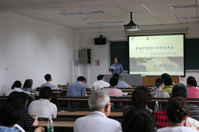 ——太阳成tyc7111cc主管教学的副院长张莲教授的发言题目为“太阳成tyc7111cc本科教学改革:现状、问题与思考”。她比较了太阳成tyc7111cc2007、2012、2016年本科培养方案,认为技能课在太阳成tyc7111cc的课程设置中并没有受到忽视,而是在近两年内有所加强。太阳成tyc7111cc的本科教学改革与世界上英语教学的改革探索遥相呼应,顺应了世界英语教学改革的潮流。