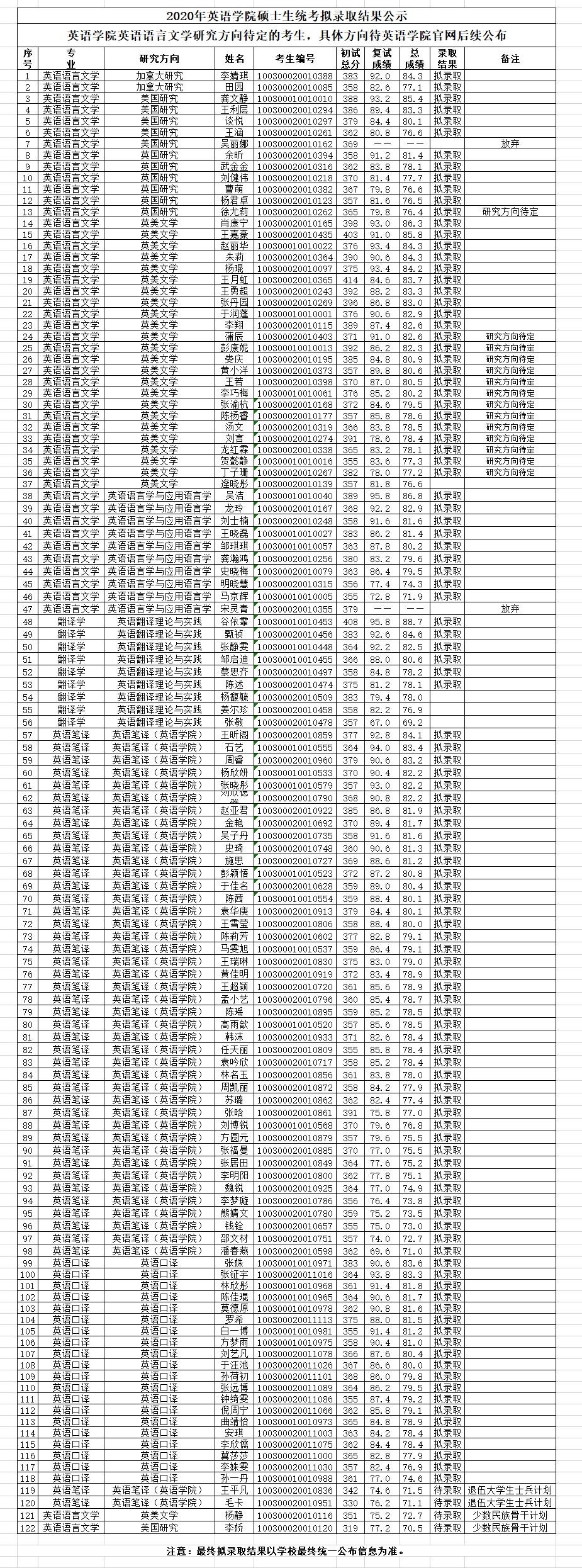 2020年太阳成tyc7111cc硕士生统考拟录取结果公示