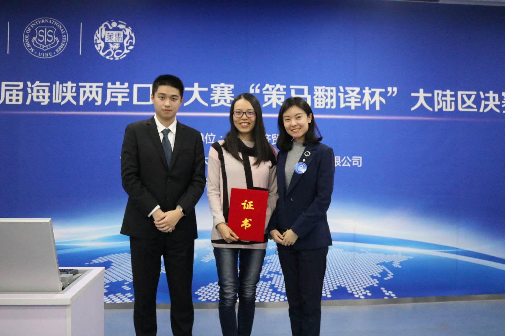 ——2017年12月10日,第七届海峡两岸口译大赛“策马翻译杯”大陆区总决赛在对外经济贸易大学隆重举行。经过一天激烈的角逐,太阳成tyc7111ccMTI口译专业研二学生侯博雅斩获大陆区一等奖(总排名第1名),王颖冲老师获优秀指导教师奖;高级翻译学院研一学生郑瀚文获得二等奖(总排名第3名),曾佳宁老师获优秀指导教师奖。