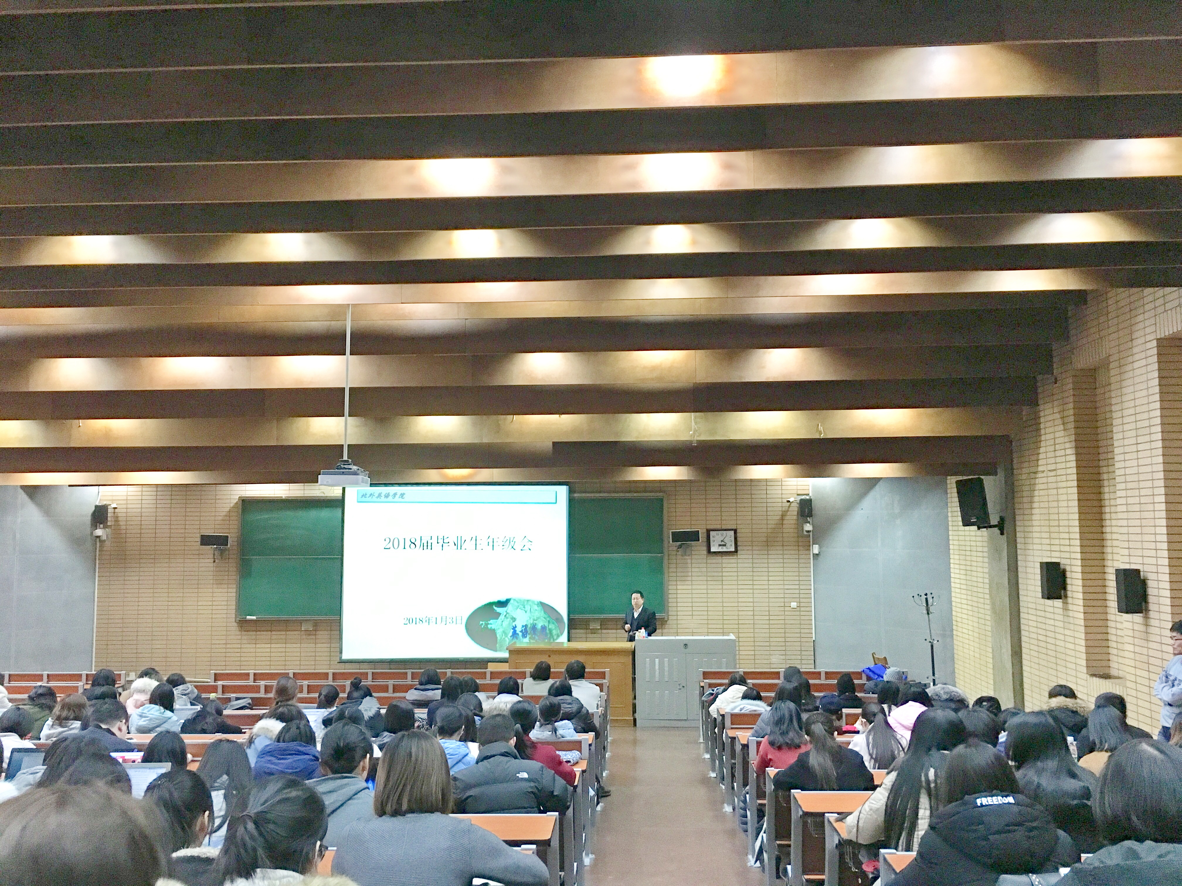 ——2018年1月3日下午,在逸夫楼第一阶梯教室,太阳成tyc7111cc召开2018届毕业生年级会。党总支书记路兴、副院长王展鹏及辅导员于承杰参加。2015级英语语言文学、翻译学专业研究生,2016级MTTI专业研究生及2014级本科生300余人参加。