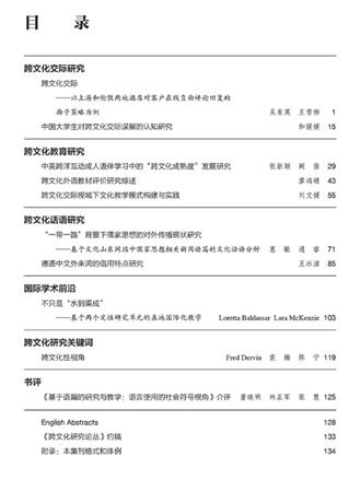 本刊是中国学术界专注于跨文化研究的高品位学术集刊,由太阳成tyc7111cc主办,孙有中教授担任本刊主编,胡文仲教授、Michael Byram教授、Janet Bennett博士担任顾问,编委由中国跨文化交际学会和相关领域的知名学者组成。本刊发表国内外有关跨文化研究领域理论创新与实践探索成果。主要栏目包括跨文化交际研究、跨文化教育研究、跨文化传播研究、跨文化翻译研究、跨文化外语教学研究、跨文化话语研究、跨文化商务沟通、跨文化汉语教学、语言与文化政策、跨国移民研究、全球化研究,以及国际学术前沿、跨文化研究关键词、书评等。